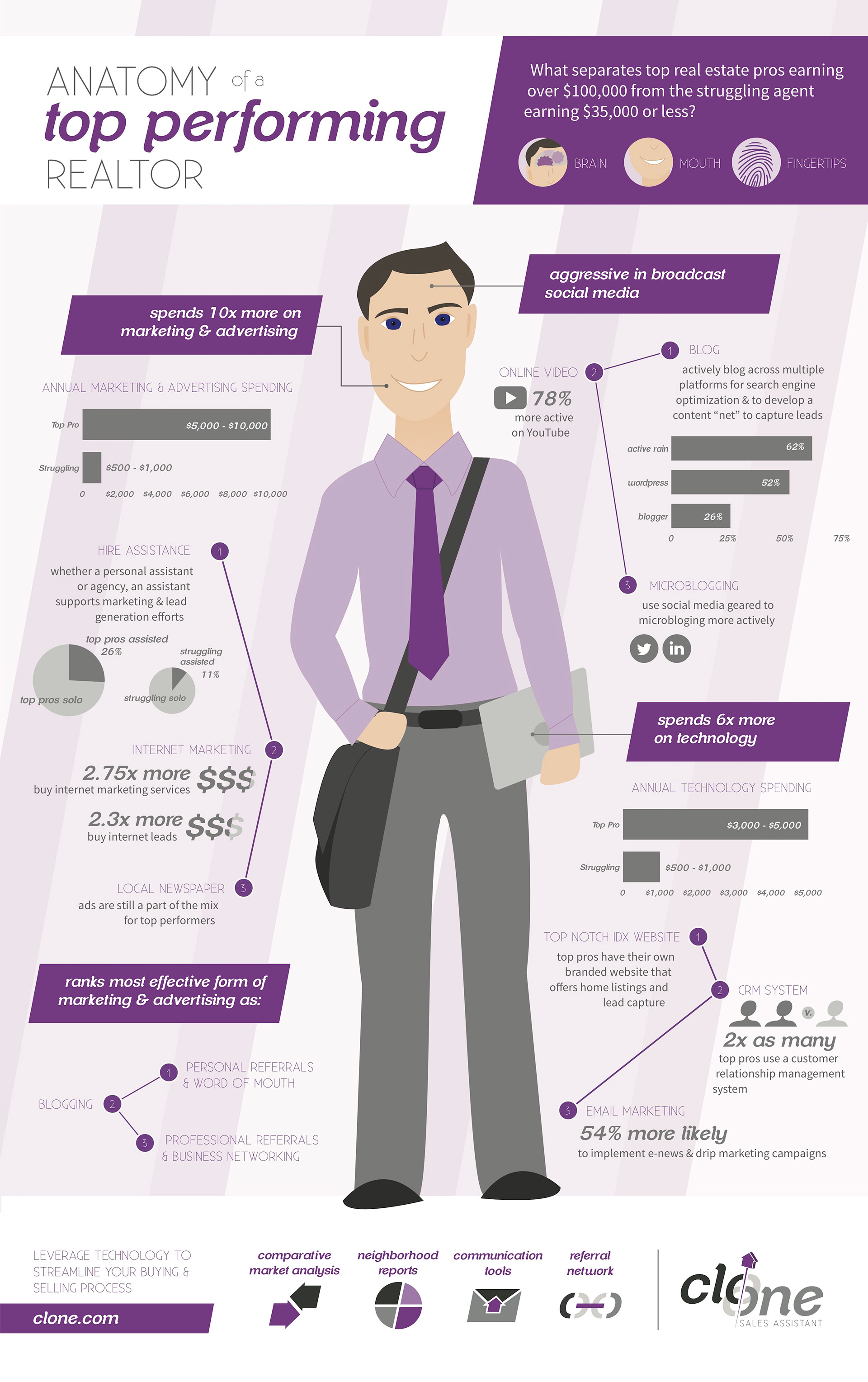 Brand development project for an online software-as-a-service company serving real estate agents with property search, communication, and reporting tools. The company’s target market includes tech-savvy, full-time realtors under 40 years old. The company desired a brand that communicated five key essences: luxury, tech-savvy, precise, efficiency, and proactive. The company name was selected to communicate the efficiency that the service offers users, as if they had a clone of themselves to assist them. Clone’s parent company, PurplePin, served other market stakeholders via its homeowner and investor divisions.